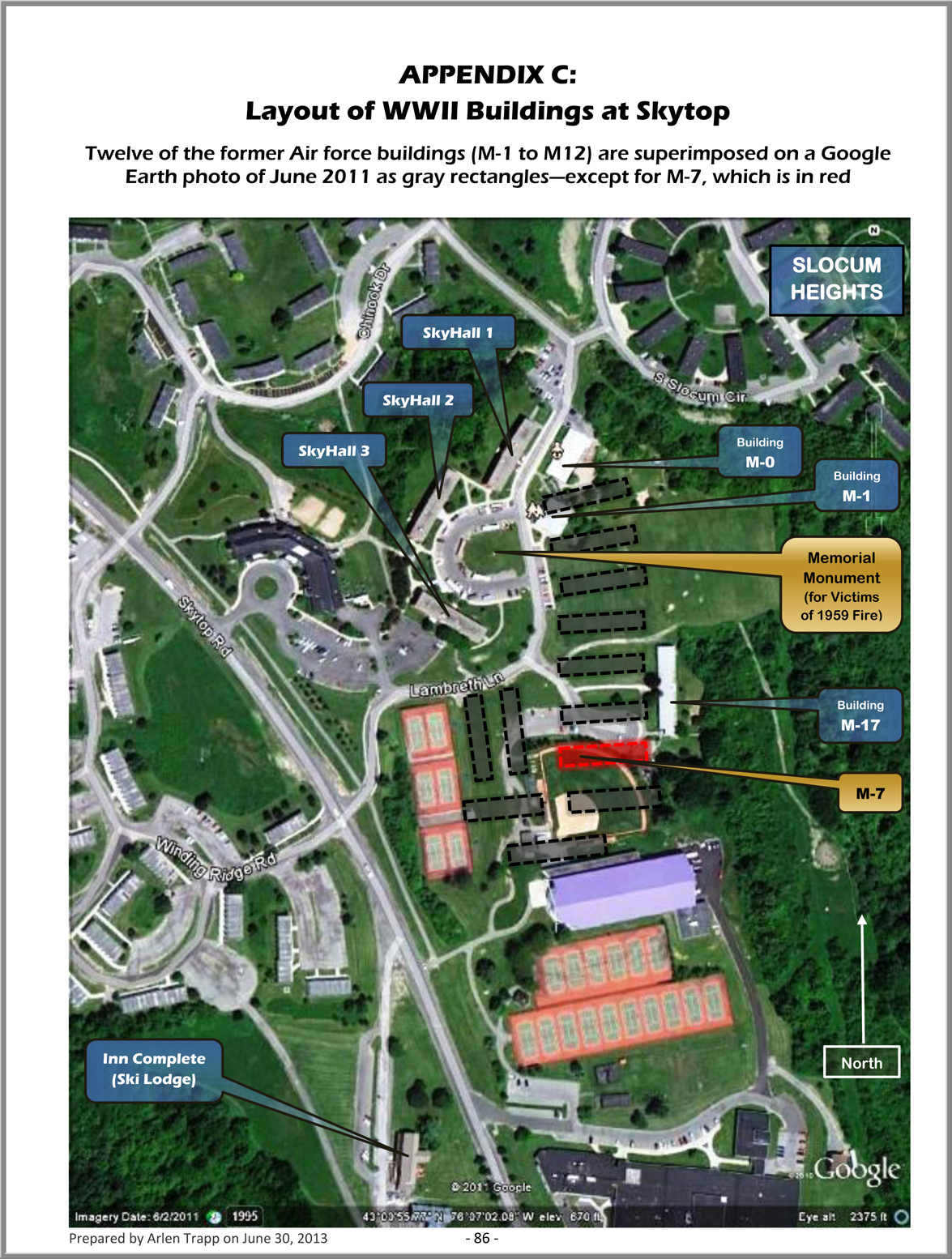 The university housed Air Force language students (single airmen and unaccompanied married personnel) in World War II-era prefab tin barracks on Skytop. On 6 January 1959, an early morning fire swept through barracks M-7, which housed 43 airmen. The fire killed seven and seriously injured 19 other occupants. (Arlen Trapp has done an outstanding job of documenting details associated with the fire and is supporting creation of the memorial.)